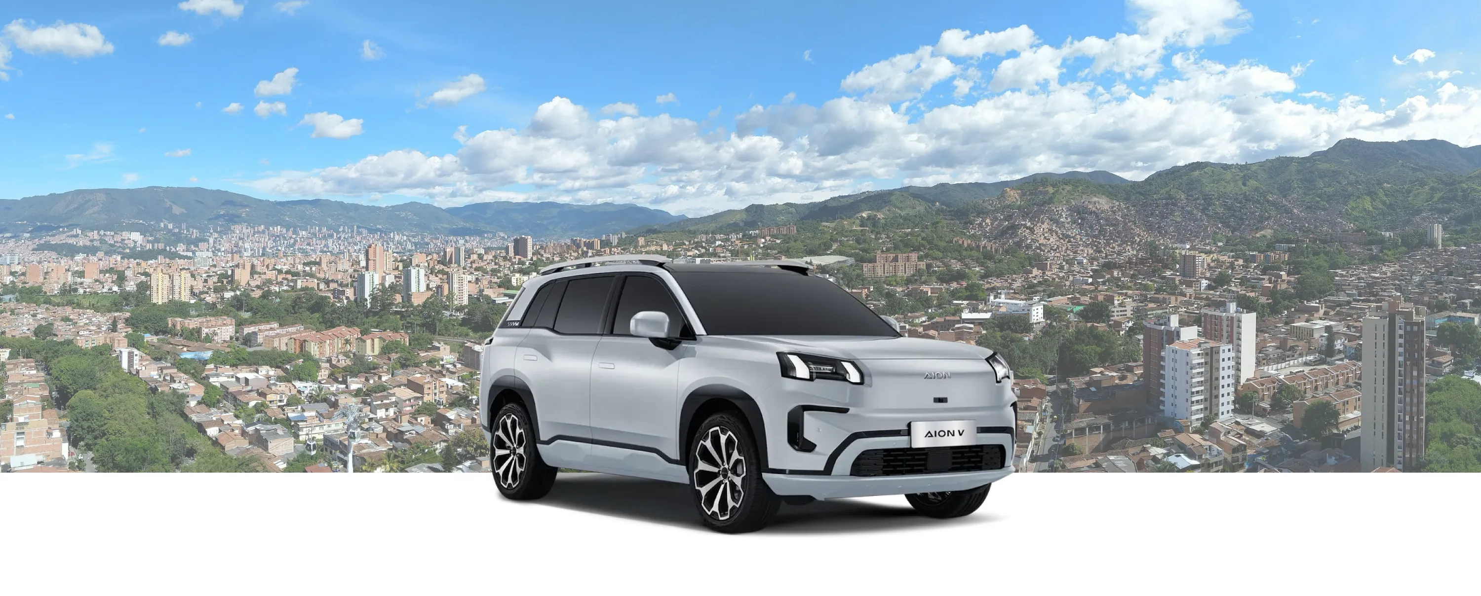 SUV eléctrico GAC AION V recorriendo la autopista Bogotá-Medellín.